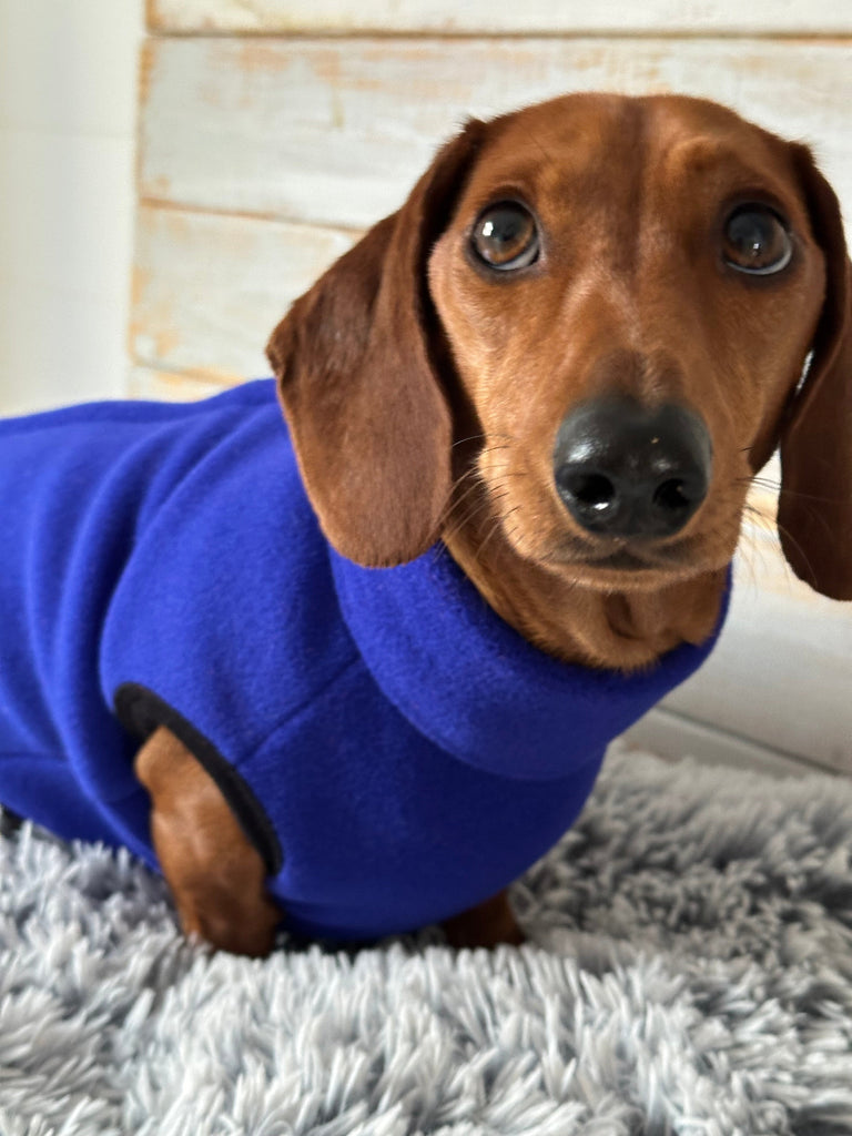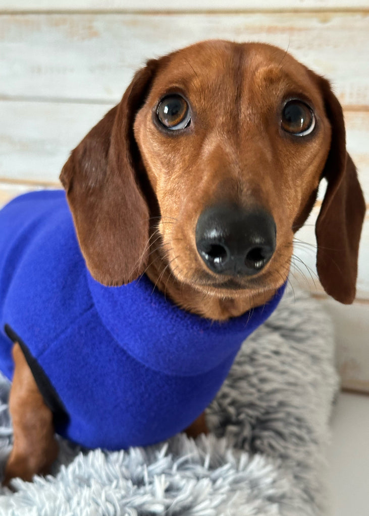 Cobalt Sky Polartec® Royal Fleece – A Bold, Sleek Jumper for Your Dachshund ☁️