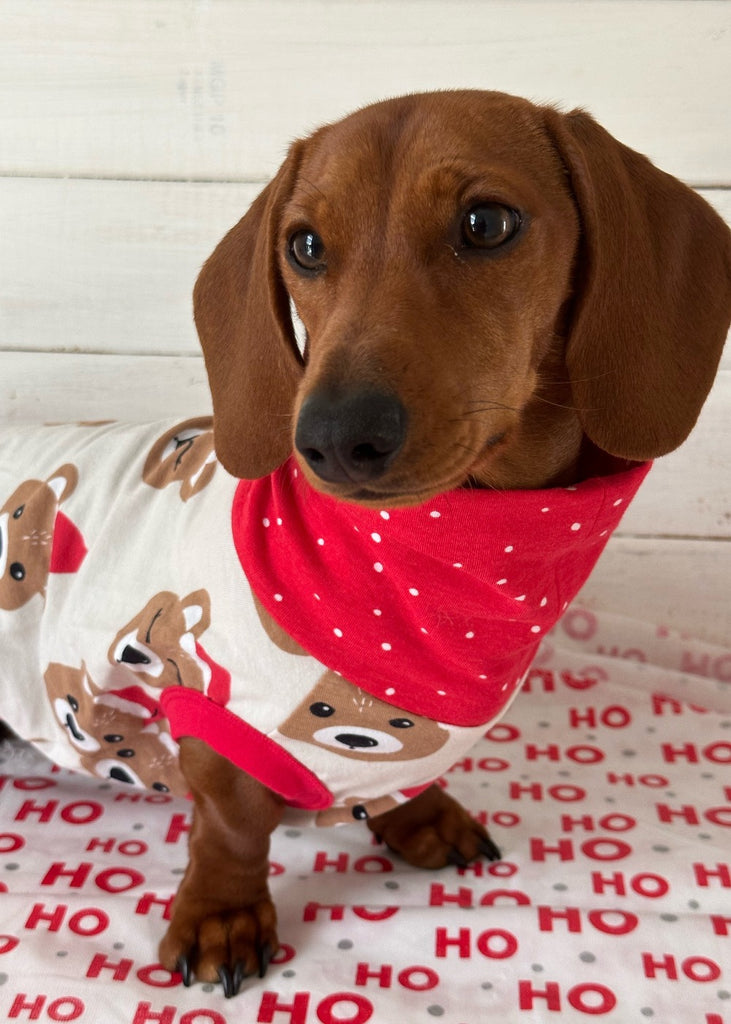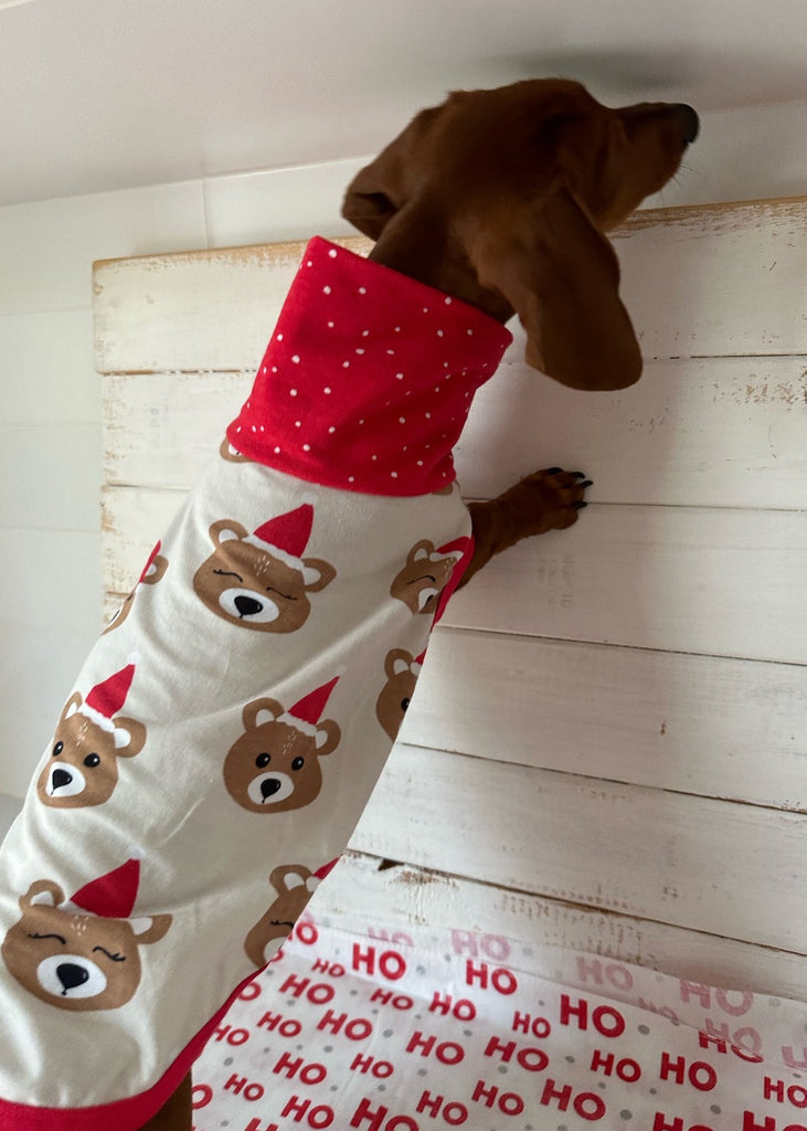 Our Rompers and Tees are carefully designed to provide a comfortable, lean fit that helps keep your pup’s front legs securely in place without restricting movement. The fabric has a gentle stretch, allowing for a snug or slightly relaxed fit depending on your dog’s build.
