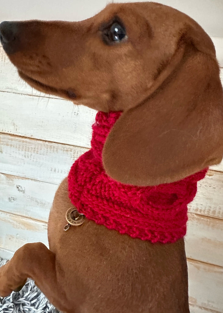 Wrap your dachshund in timeless style and snug warmth with our beautifully hand-knitted Aran-style snoods—crafted to keep your pup cosy, comfortable, and turning heads all season long.