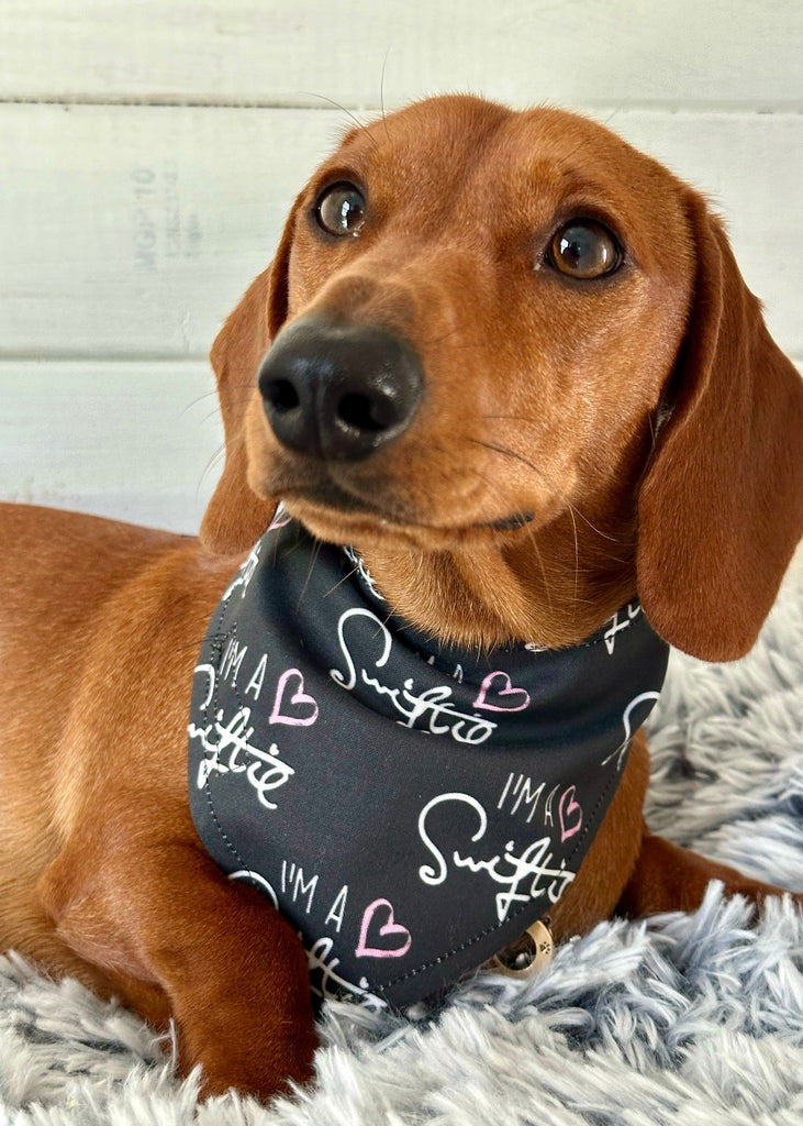 Super cute reversible to wear it which ever way you please. So if you are fan our LIMITED EDITION Swiftie Dog Danas are available now.
