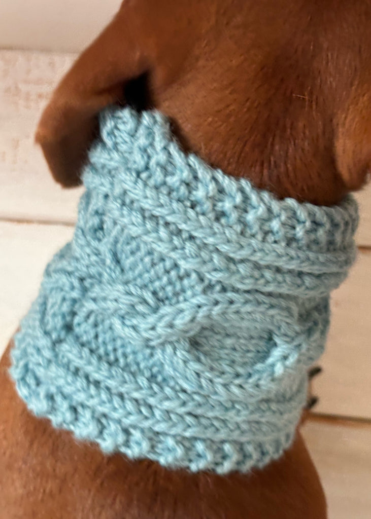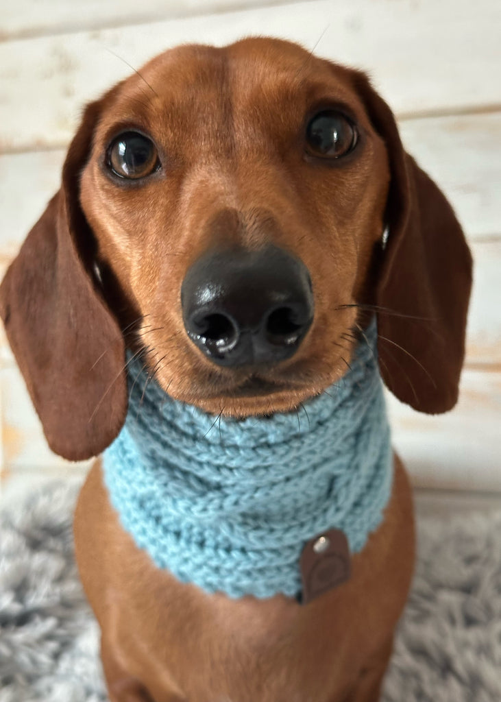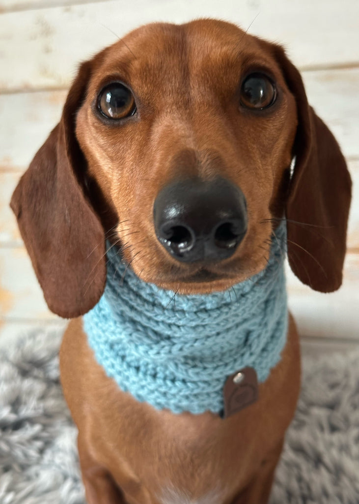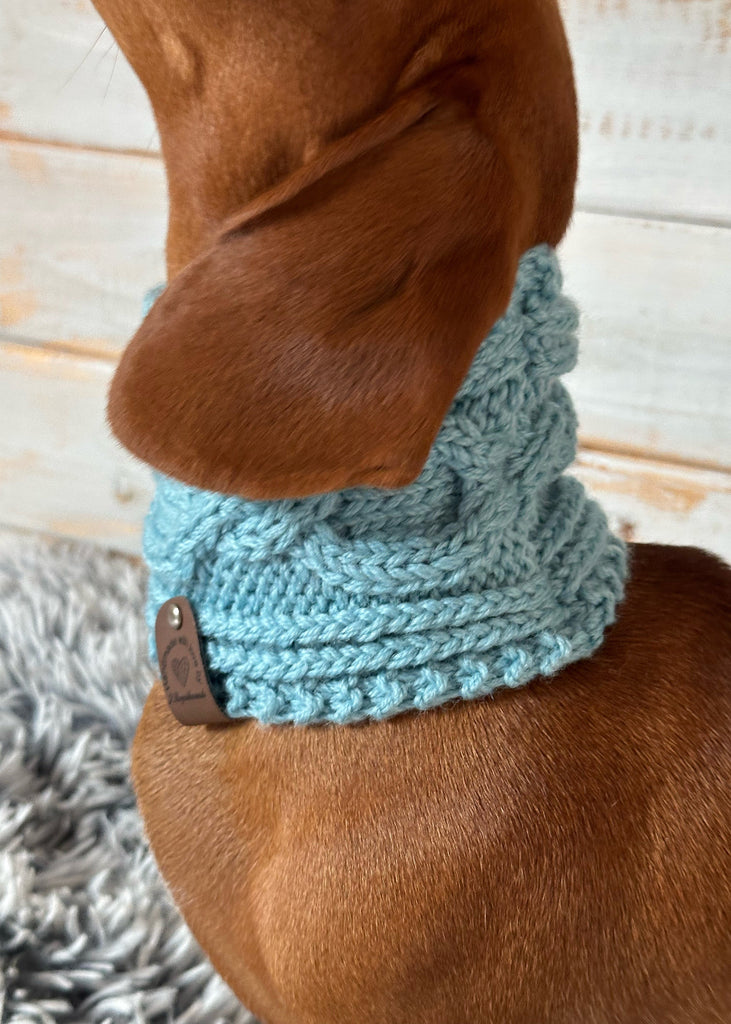 Wrap your dachshund in timeless style and snug warmth with our beautifully hand-knitted Aran-style snoods—crafted to keep your pup cosy, comfortable, and turning heads all season long.