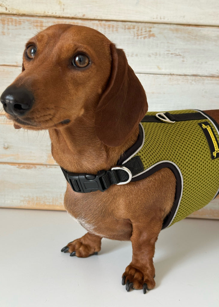 Get ready for walkies with the stunningly striking Ivy OxyMesh Reflective Hug Me Harness! This striking Ivy harness is as stunning as it looks, but keeps your pup cool, comfy, and safe on every adventure. Designed specifically for small dogs (like our favourite dachshunds), it’s the ultimate choice for active pups who love to stand out.