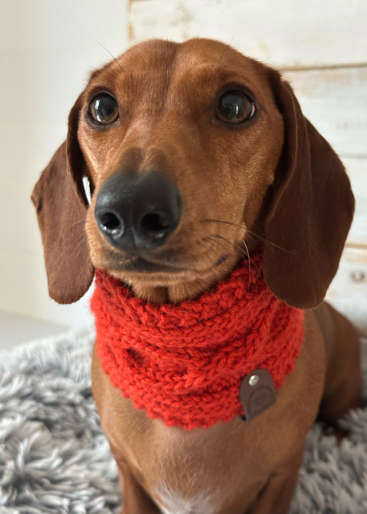 Wrap your dachshund in timeless style and snug warmth with our beautifully hand-knitted Aran-style snoods—crafted to keep your pup cosy, comfortable, and turning heads all season long.