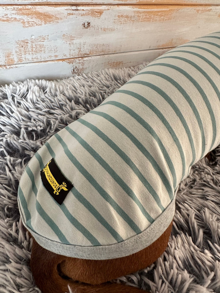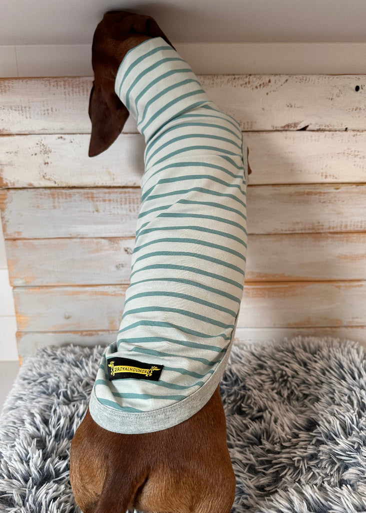 Specially tailored for dachshunds, the fit hugs long bodies while giving short legs total freedom of movement. The soothing green eucalyptus stripes bring a natural, refreshing charm — a look that’s as elegant as it is practical.