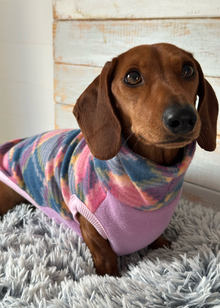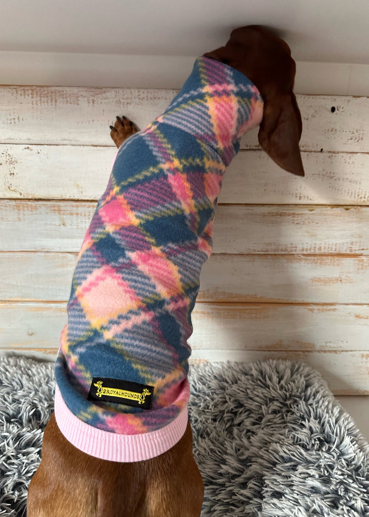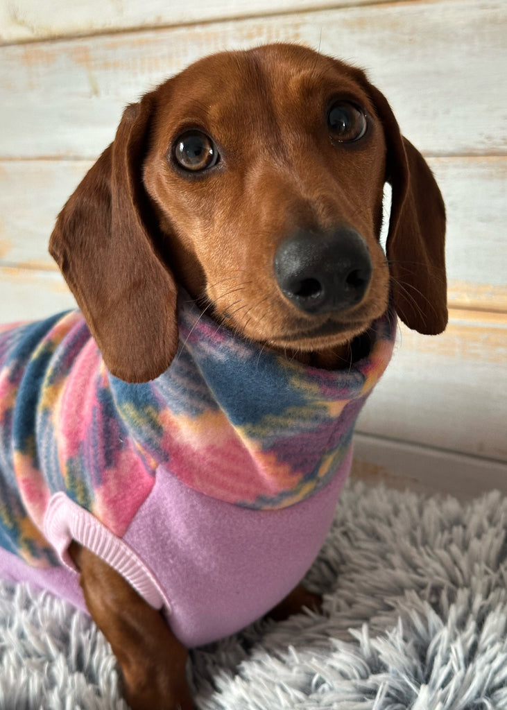 For the dachshund who’s all about pretty details and practical comfort, Lavender Lane Plaid is a winter essential.