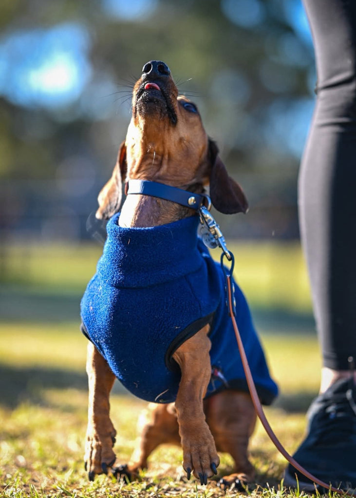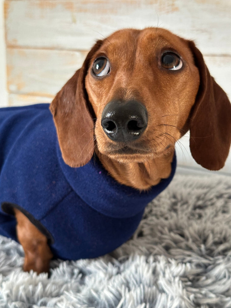 For the dachshund with a taste for understated elegance, Midnight Navy is the fleece jumper that whispers of quiet nights and starry skies. Inspired by the deep blue of midnight and the serenity of moonlit walks, this Polartec® jumper offers warmth, style, and sophistication for every pup who knows how to make an entrance.