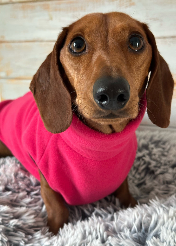 Raspberry Bliss Polartec® Royal Fleece – A Sweet Comfortable Dachshund Jacket for Your Dog 🍓
