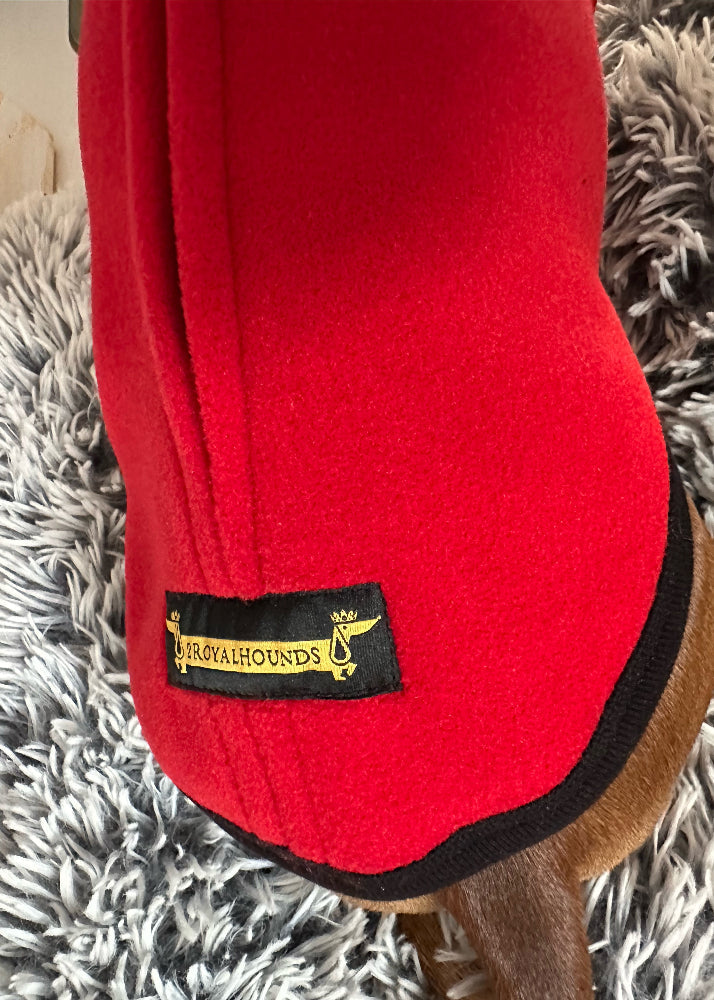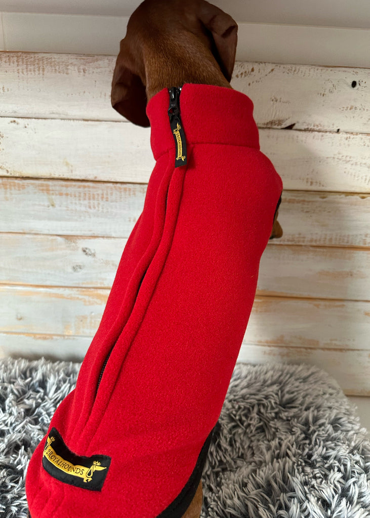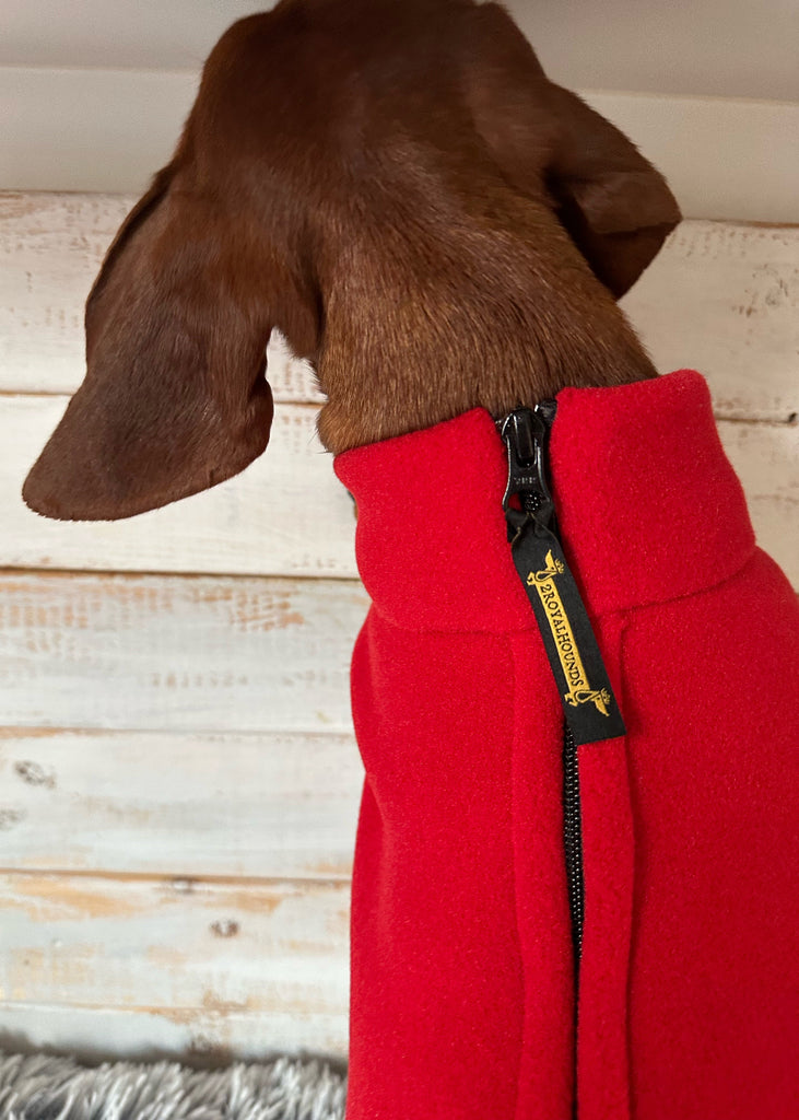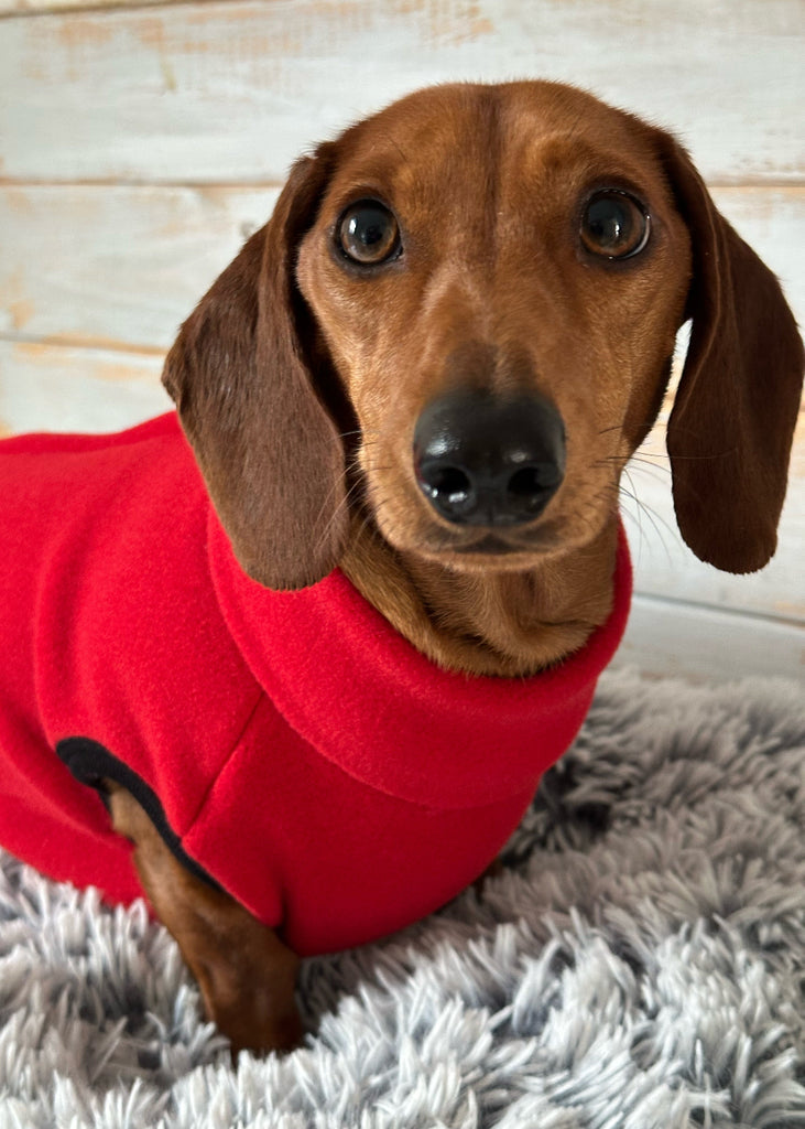 Speedway Red Polartec® Royal Fleece – A High-Energy Jumper for Speedy Dachshunds 🔥