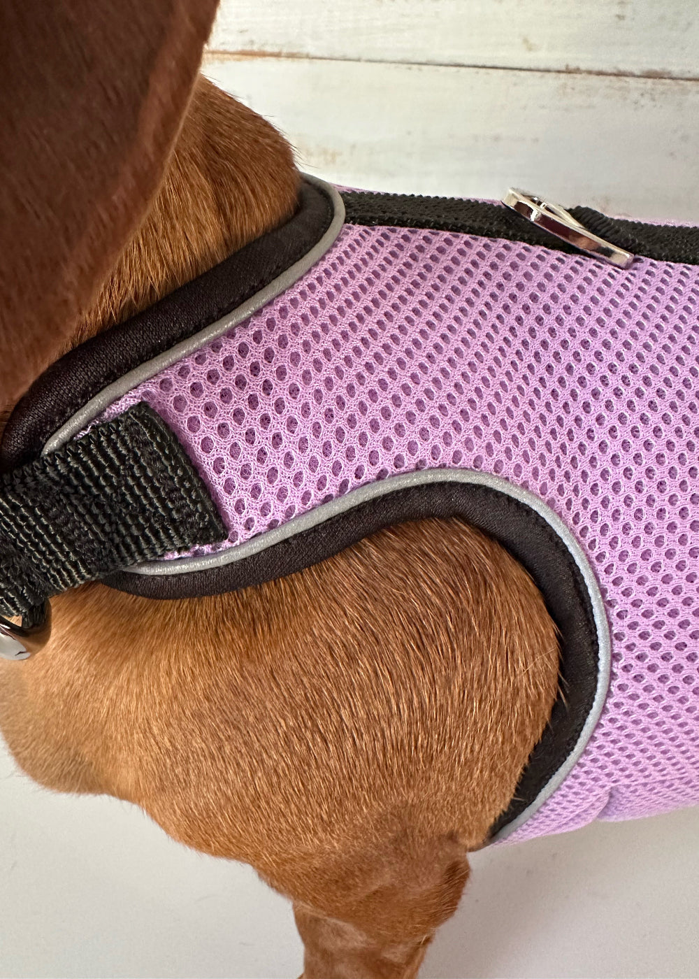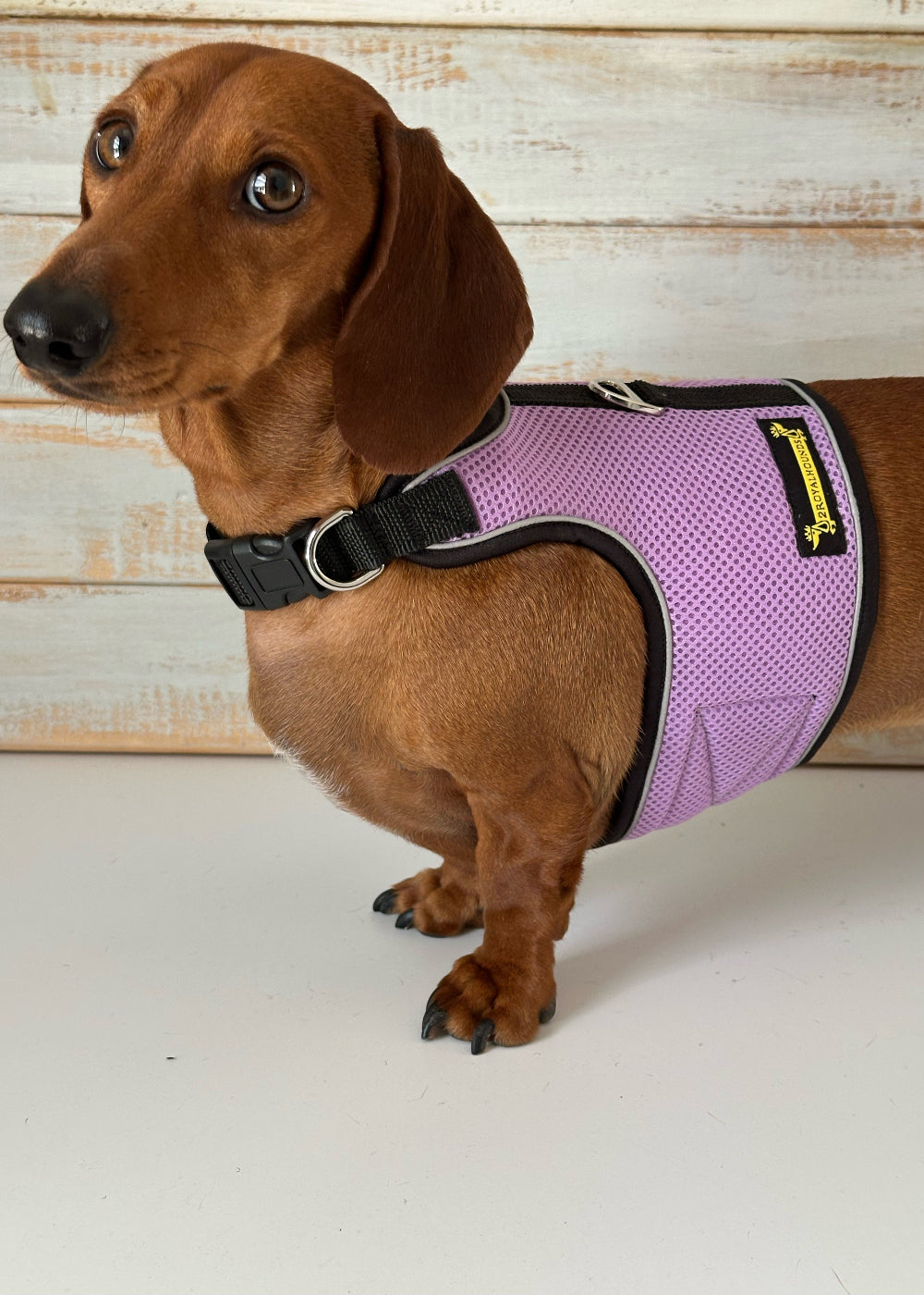 Add a touch of elegance to every walk with the dreamy Lavender Haze OxyMesh Hug Me Harness. Designed for dachshunds and small dogs, this harness is as gentle as it is stylish—perfect for pups who love comfort and sophistication.