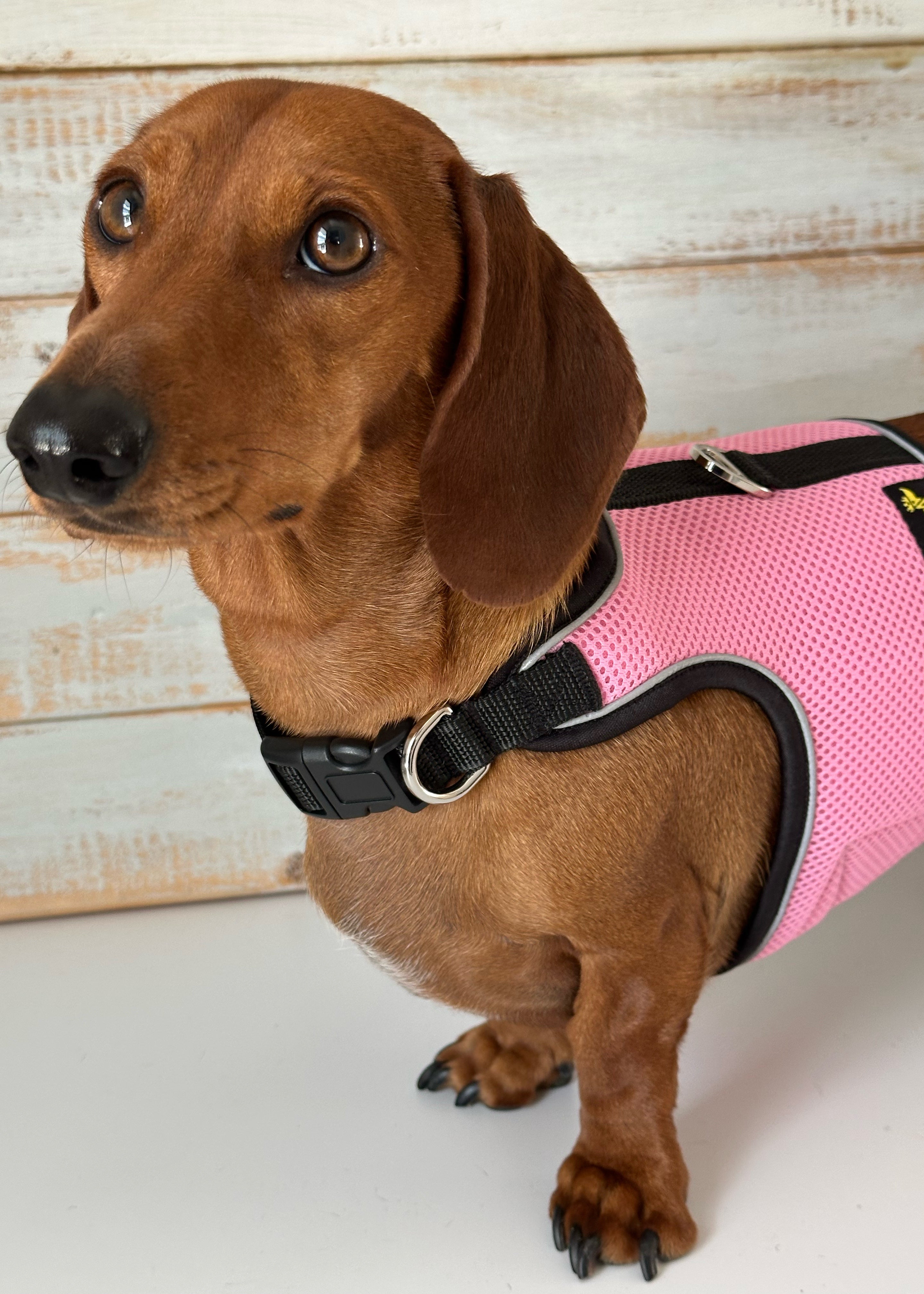 Add a touch of elegance to every walk with the dreamy Soft Pink OxyMesh Hug Me Harness. Designed for dachshunds and small dogs, this harness is as gentle as it is stylish—perfect for pups who love comfort and sophistication.