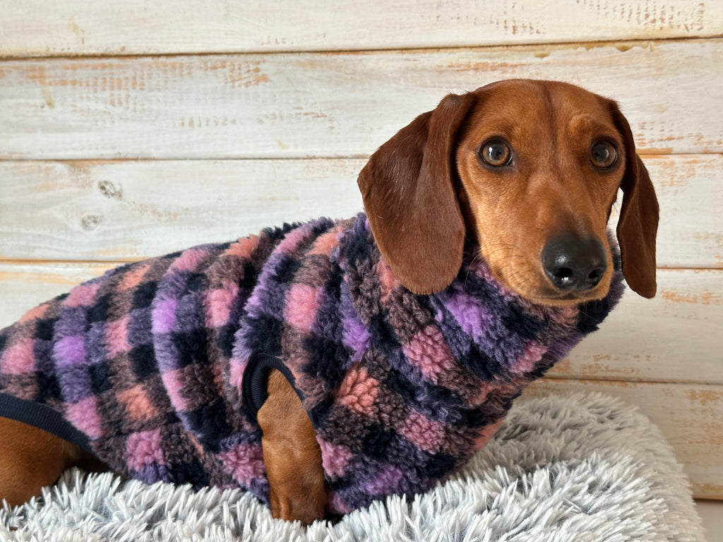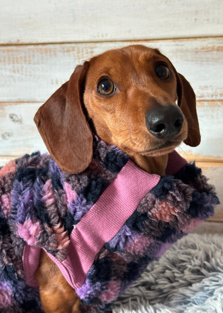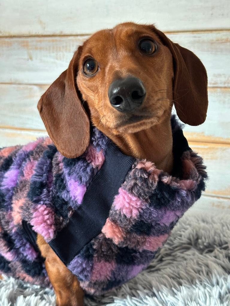 Crafted from luxuriously soft Italian teddy coating, this piece is designed to keep your dachshund warm and supremely stylish on even the chilliest days. The rich colours evoke a moody winter palette, while the tailored fit ensures comfort and movement for your sausage dog’s unique shape.